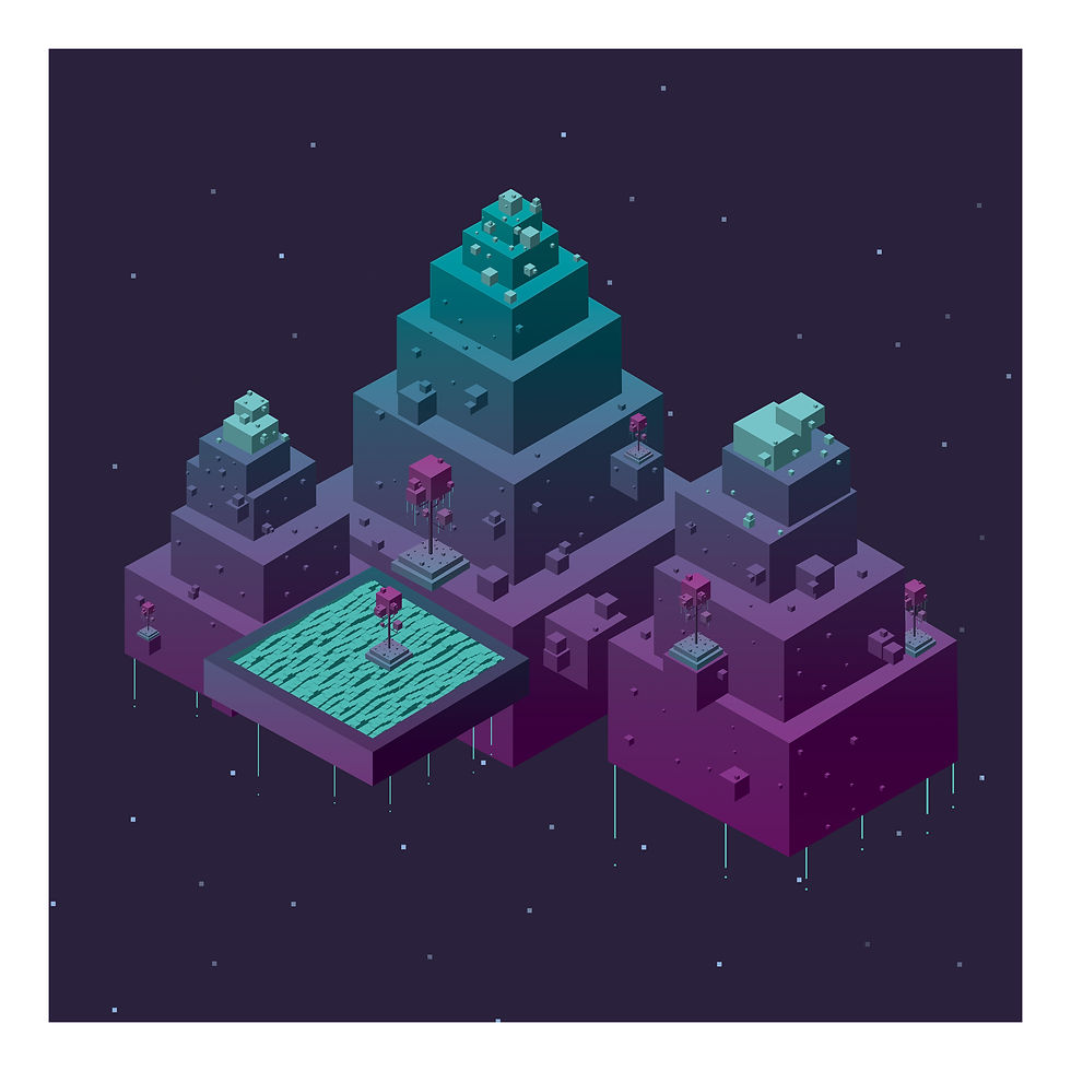 This series was done for an exhibit auction coming up soon called "Squared Up". Everything in each piece is made of cubes and squares, with each illustration creating an environment to be held within the next one.
